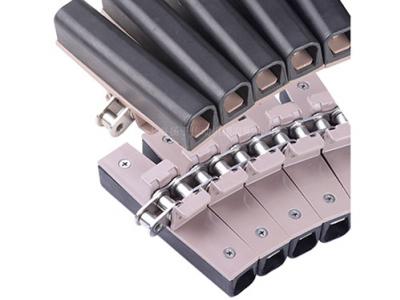 柔性链输送机广泛应用于医药、食品、电子、日化等环境卫生比较高的行业中,它能够在生产线上完成物料的运输到包装的一系列操作。在饮料行业